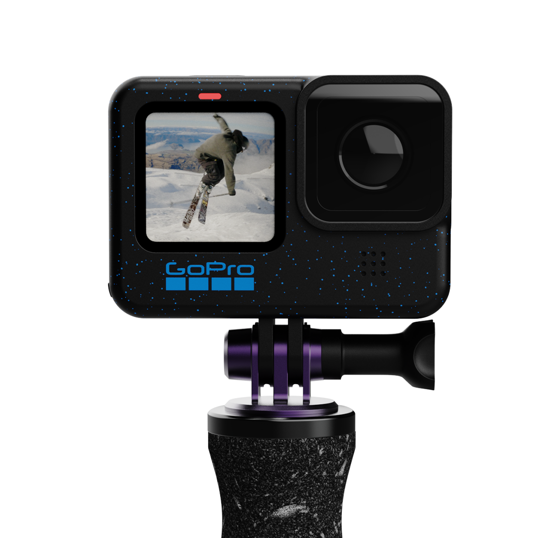 If you film with a GoPro MAX, or an Insta360, you know how rad 360 footage can be. The mono mount enables you to attach a 360 camera to the top of your pole and capture creative angles, especially when you are getting face shots. Alternatively, use a 3-Post to 1/4 inch converter [not included] to use your pole as a monopod for mirrorless/ DSLR stills.